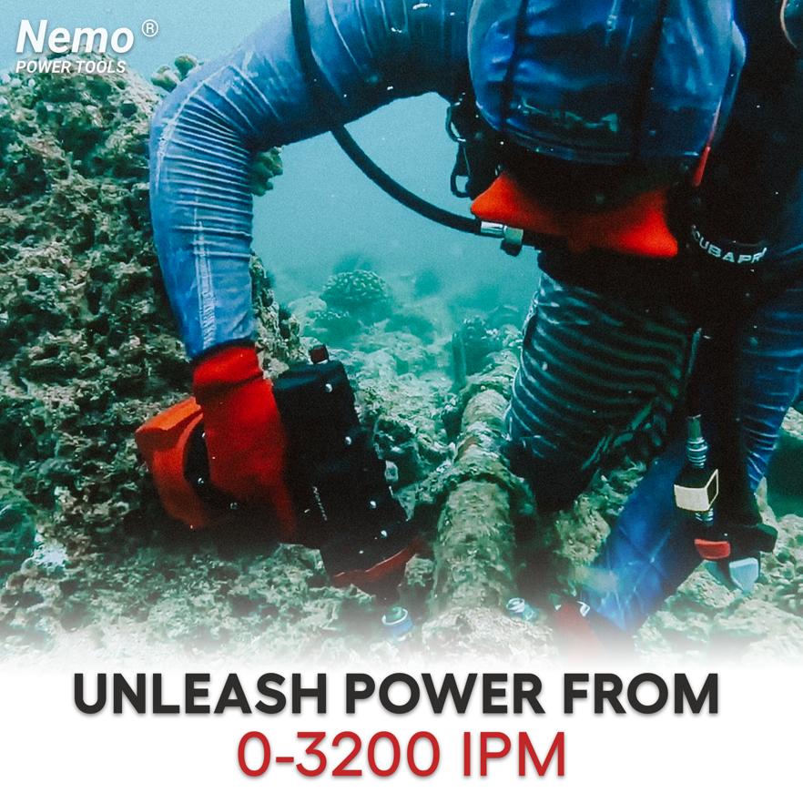 La Nemo Impact Wrench est certifiée pour une profondeur maximale de 50 m (164 ft) et dispose d’une peinture noire et rouge résistante à l’eau salée. Elle est livrée avec une mallette de transport robuste, un chargeur de batterie, une valve de pressurisation et une pompe permettant de pressuriser l’outil.