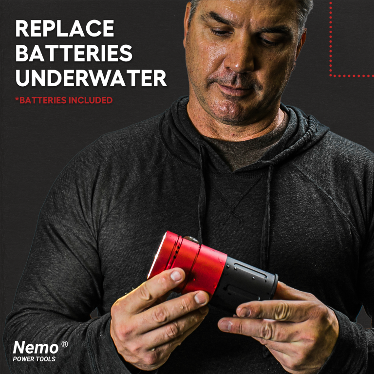 Hors de l’eau : 300 g sans batterie, 800 g avec pack batterie