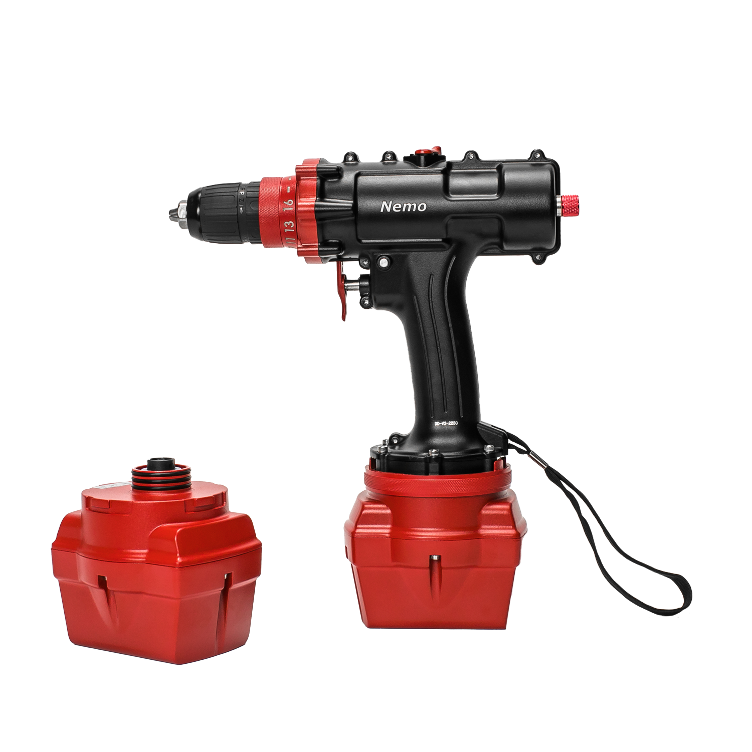 La Nemo Divers Drill est la première perceuse étanche sans fil au monde, conçue pour les plongeurs professionnels, les techniciens de maintenance de piscines et les équipes de maintenance offshore. Entièrement submersible jusqu’à 50 mètres (164 pieds), elle offre des performances élevées dans les environnements sous-marins les plus exigeants.